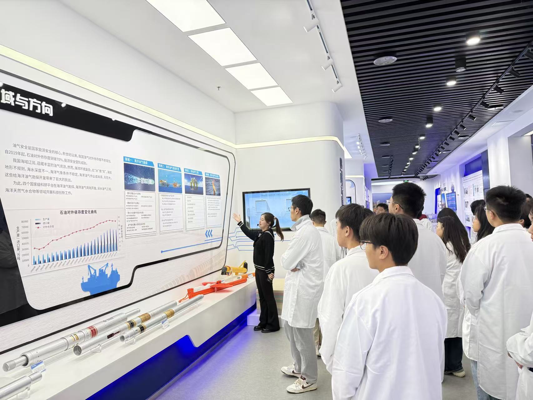 同学们在科创平台的展厅,系统了解了中海油科研平台的发展历程、战略布局与核心使命。展厅详实的资料与讲解员生动的讲解,让同学们充分认识到了中海油在国家能源战略领域所取得的辉煌进展与突破,也激发了同学们作为中海油专项生的骄傲感与责任感。